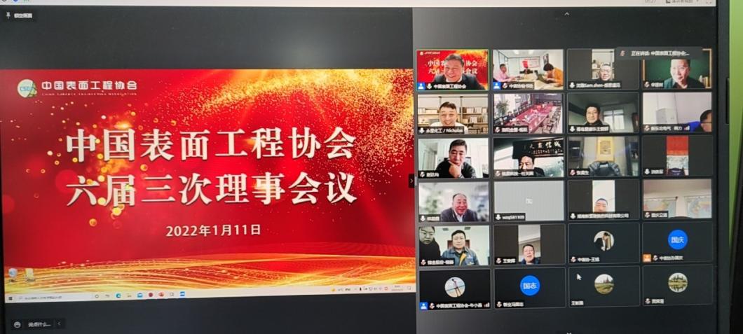 2022年1月11日上午,中国表面工程协会召开了六届三次理事会。遵循国家新冠肺炎疫情防控工作部署和要求,本次会议通过腾讯会议线上方式进行。协会正副理事长、常务理事、理事等代表156人参加了会议。我协会参加该会议。