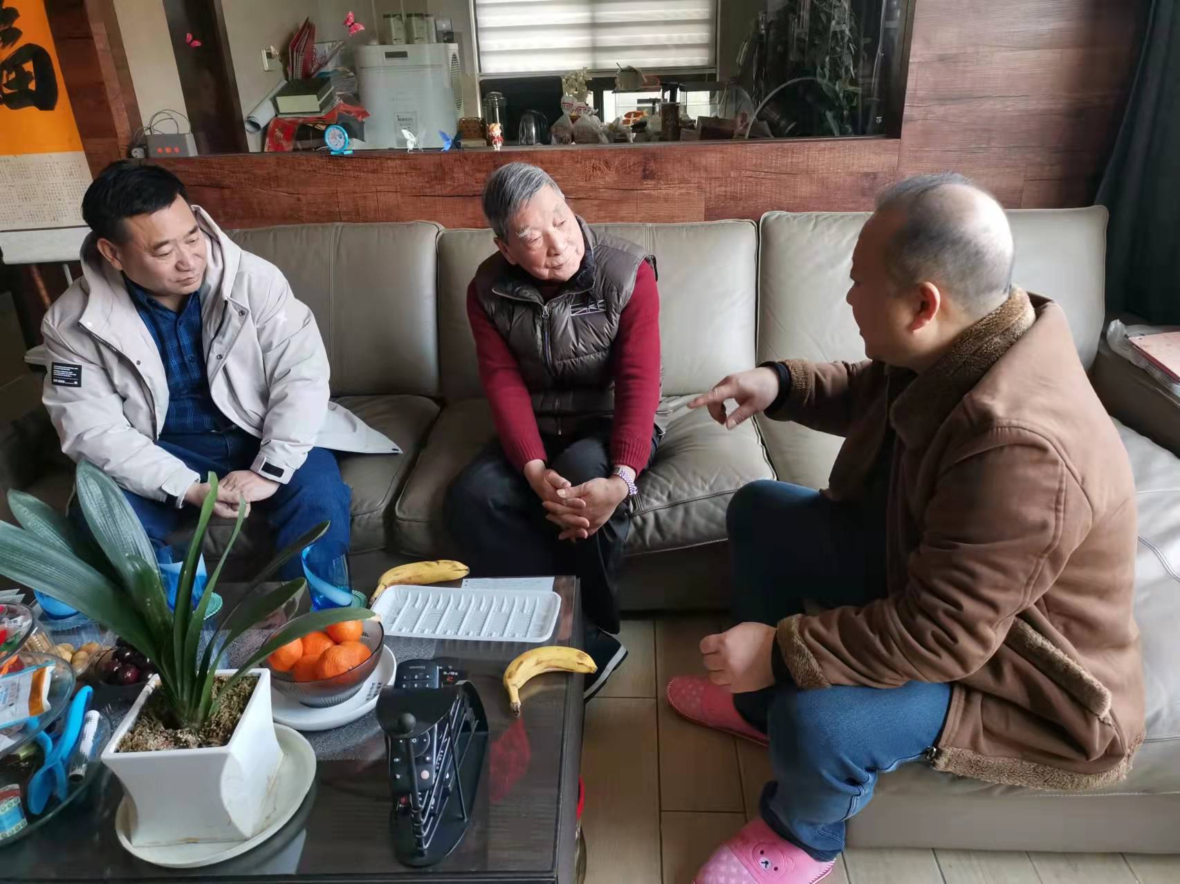 协会新会长冯小龙和秘书长竺建章、会计江玉锋去看望老同志