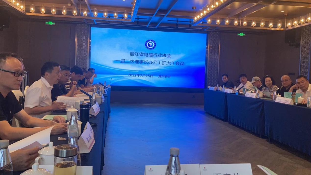 浙江省电镀行业协会一届二次理事长办公(扩大)会,2022年7月15日至16日在湖州长兴 景澜.富硒山居度假酒店富硒厅举行。协会秘书长竺建章参加此次会议。