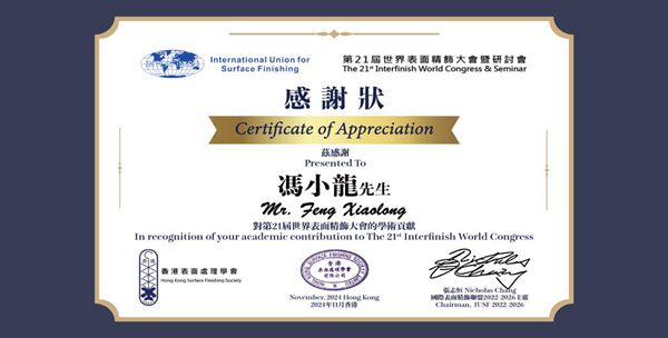 本次大会由International Union for Surface Finishing(国际表面精饰联盟)与香港表面处理学会联合主办,得到了中国表面工程协会的大力支持与协助。此次盛会汇聚了全球表面处理领域的顶尖专家、学者及业界精英,共同探讨先进材料表面处理技术的最新进展及制造业的未来发展趋势。
